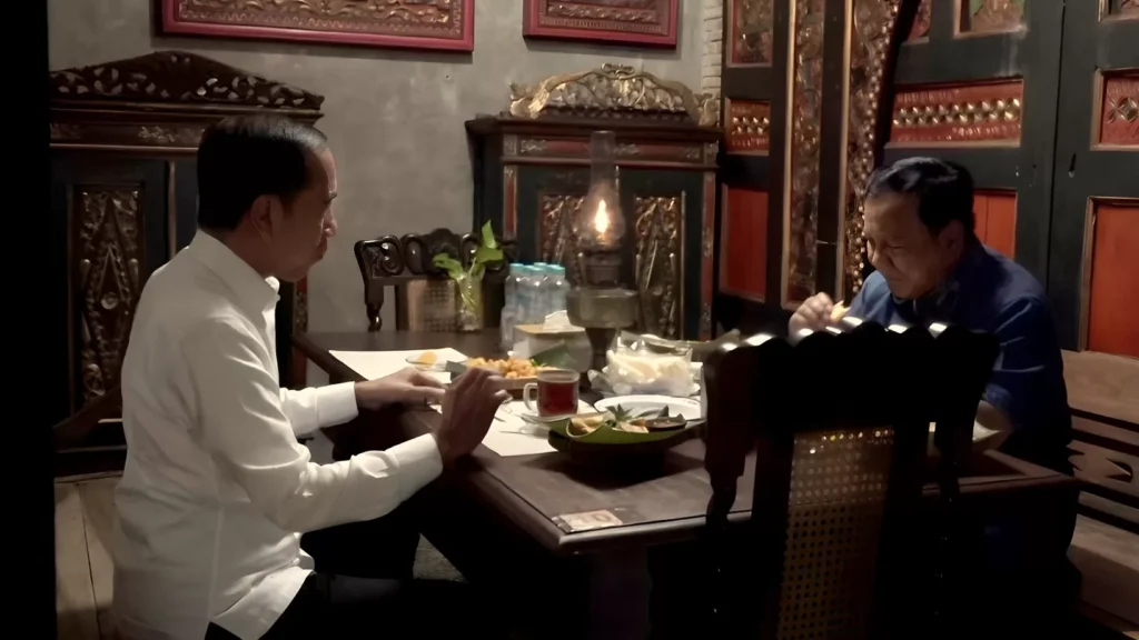 Prabowo menjemput Jokowi untuk makan malam di Angkringan Semar.